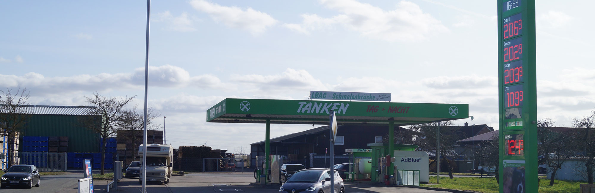 Unsere Genossenschaft betreibt eine eigene Tankstelle, an der Sie an 365 Tagen im Jahr rund um die Uhr hochwertigen Kraftstoff günstig tanken und ganz bequem per EC-Karte oder Tankkarte bezahlen können. Sie finden unsere Tankstelle in Guderhandviertel direkt an der Hauptstraße gegenüber unserem Raiffeisenmarkt. Darüber hinaus bekommen Sie bei uns auf Wunsch auch eine persönliche Tankkarte, die monatlich abgerechnet wird. Diese Tankkarten sind besonders für unsere Geschäftskunden attraktiv, da die Bezahlung des Kraftstoffes direkt über den jeweiligen Betrieb abgerechnet werden kann.
